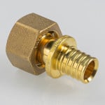 VTm.422.G – прямой латунный надвижной фитинг с накидной гайкой для создания разъемных соединений труб из сшитого полиэтилена и полиэтилена повышенной термостойкости c патрубками сантехнических устройств, имеющими наружную резьбу. Накидная гайка – самоуплотняющаяся, комплектуется прокладкой.