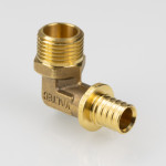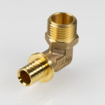 Угольник надвижной VTm.453.G – латунный аксиальный фитинг для соединения под углом 90° трубы из PEX или PE-RT с резьбовым элементом трубопровода (резьба фитинга – наружная).