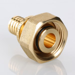 VTm.422.EBG – прямой латунный универсальный надвижной фитинг с накидной гайкой для создания разъемных соединений труб из сшитого полиэтилена и полиэтилена повышенной термостойкости c патрубками сантехнических устройств, имеющими наружную резьбу стандарта «евроконус».