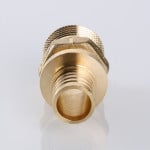Соединитель VTm.401.BG – прямой латунный надвижной фитинг с переходом на наружную резьбу для труб из сшитого полиэтилена и полиэтилена повышенной термостойкости.