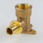 Водорозетка надвижная VTm.454.G – латунный аксиальный фитинг с креплением и внутренней резьбой, который обеспечивает соединение под углом 90° полиэтиленовой трубы и резьбового элемента (в частности, патрубка сантехнического смесителя) монтируемой системы.