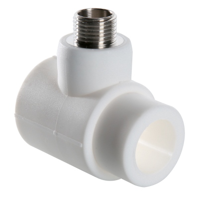 Тройник полипропиленовый коллекторный с наружной резьбой можно применить для изготовления коллекторов: сваривая фитинги друг с другом, монтажник получит распределитель потоков с необходимым числом выходов (межцентровое расстояние – 53–54 мм). Благодаря разборным соединениям использовать такое изделие бывает удобнее, чем готовый полипропиленовый коллектор с отводами под приварку PPR-труб. Корпус тройника выполнен из полипропилена PPR100, закладная резьбовая деталь – латунная (марка сплава – CW617N, способ изготовления – горячее штампование), никелированная. Диаметр патрубков под муфтовую сварку (внутренний/наружный) – 40 мм, резьбы – 1/2, 3/4".