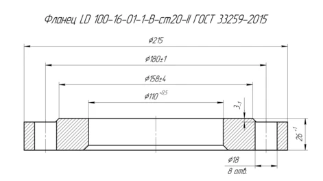 Фланец плоский 100-16-01-1-В-Ст.20 ГОСТ 33259 LD описание