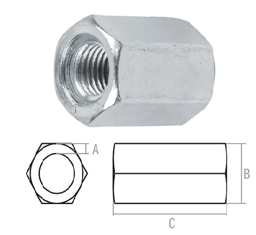удлинения шпилек, также используется вместе с винтами и болтами сопрягаемого размера.