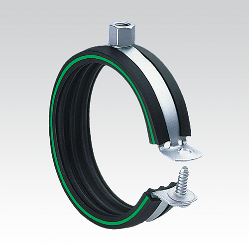 - Виброизоляционная резина не выскальзывает из хомута благодаря геометрическому замыканию и широкому охвату кромок