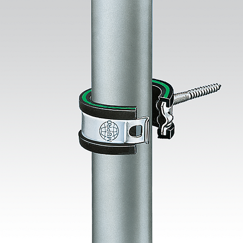 - В сочетании с держателем для сдвоенных хомутов данный хомут идеально подходит для параллельной укладки труб