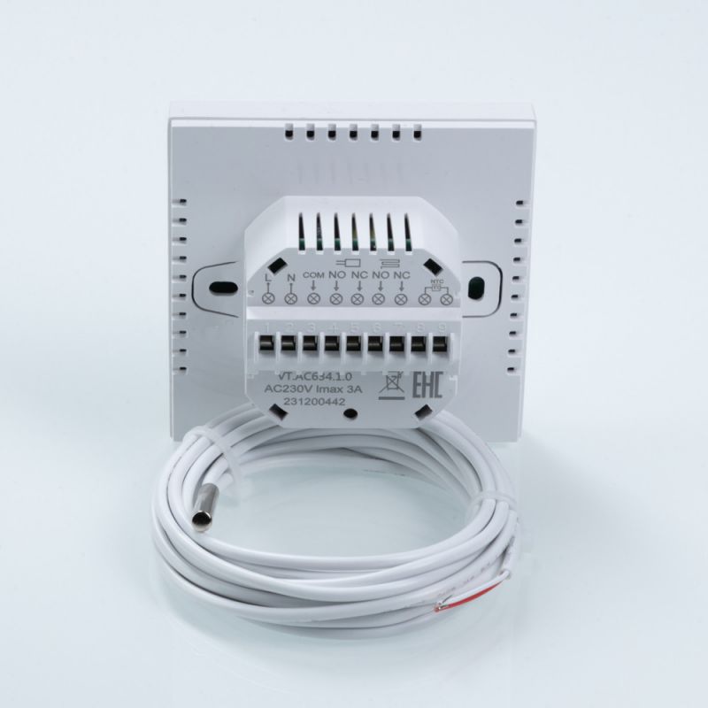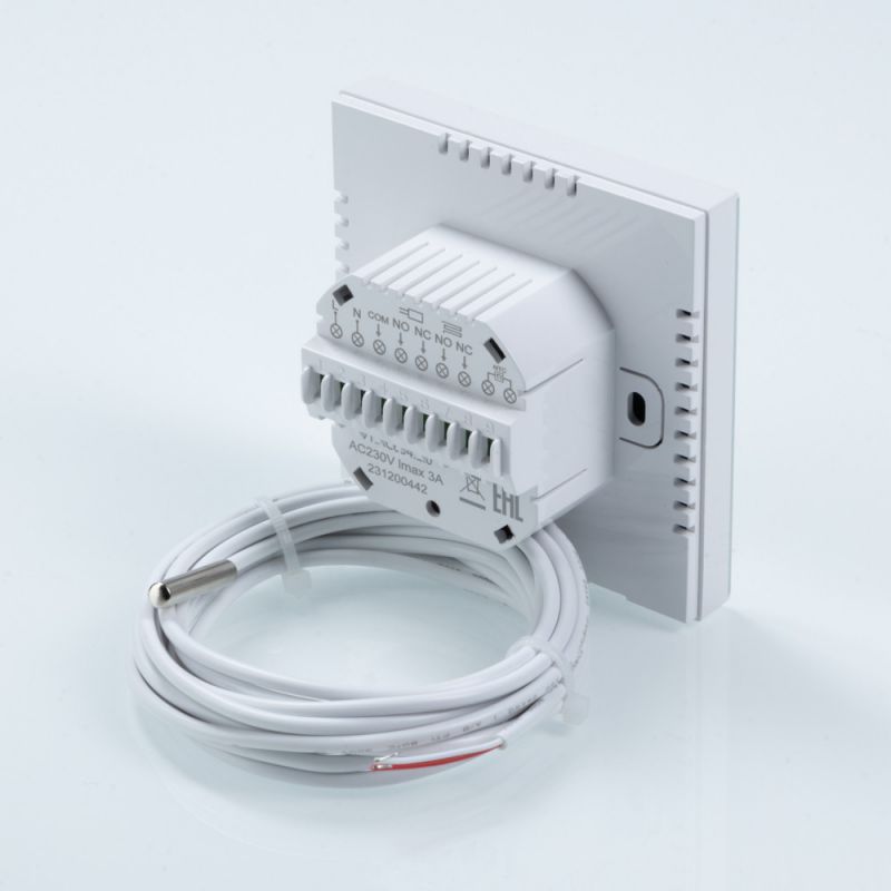 Управление исполнительными устройствами реализовано через электромагнитные реле с трехконтактным выходом на клеммный зажим термостата. Благодаря этому возможна работа как с нормально закрытыми, так и с нормально открытыми сервоприводами.