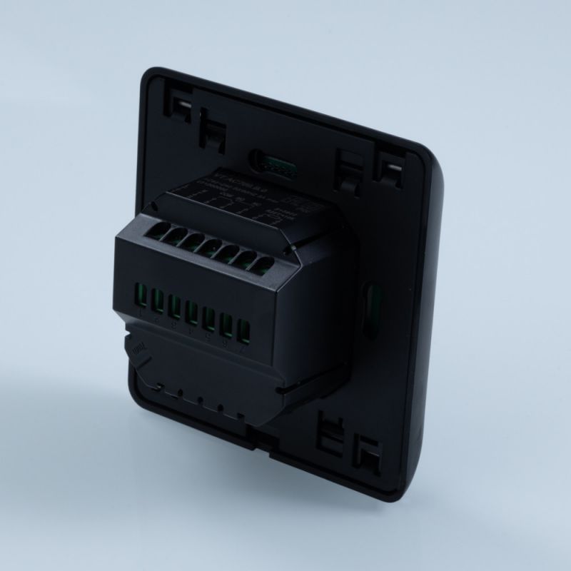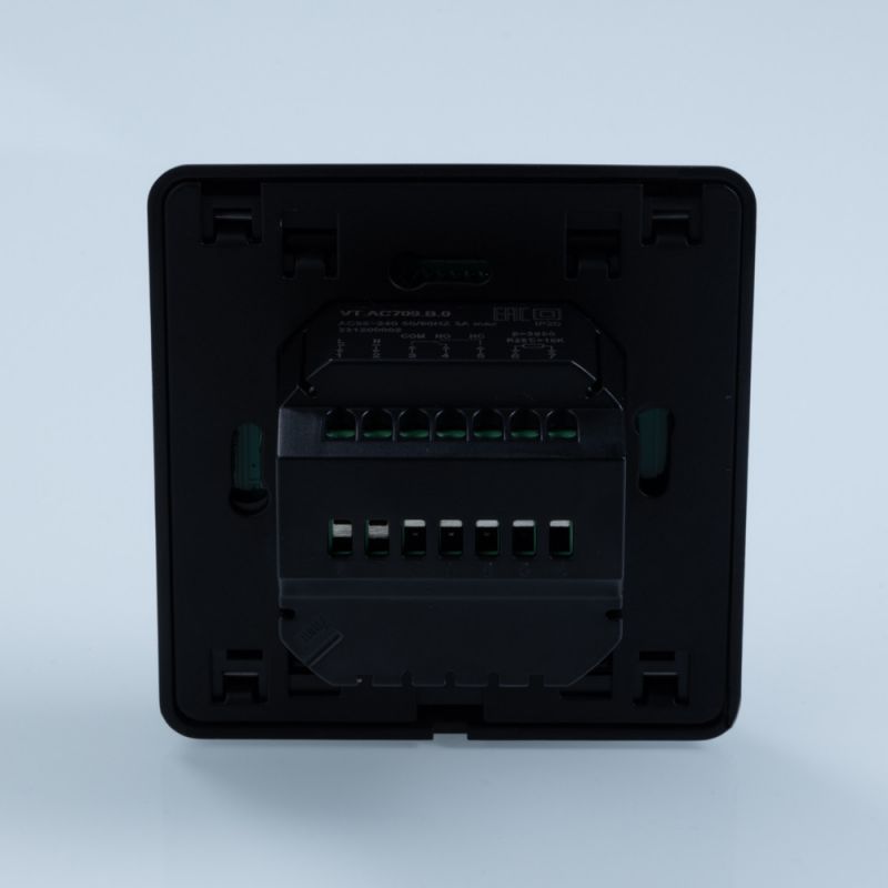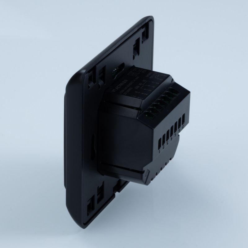 (VT.AC709.B) Хронотермостат предназначен для подачи управляющего сигнала (включить/выключить) на регулирующие устройства водяного теплого пола и радиаторного отопления. Управление осуществляется в зависимости от температуры воздуха в помещении (встроенный датчик) и температуры пола (выносной датчик, входит в комплект). Возможны недельное программирование и выбор режима работы – по датчику температуры воздуха или датчику температуры пола. Монтаж термостата производится в стандартную коробку скрытой проводки.