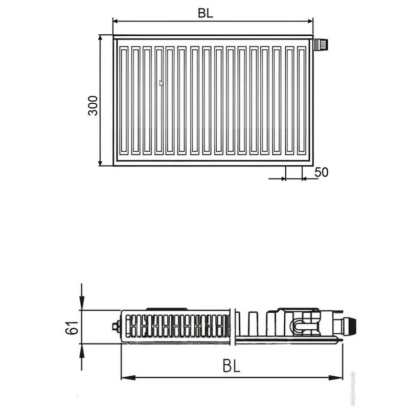 Радиатор стальной панельный Kermi FKO Тип 10 высота 300 mm боковое подключение