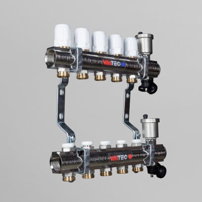Коллекторный блок латунный c регулирующими и балансировочными клапанами 1"х11 вых. евроконус 3/4". VTc.594.EMNX Valtec