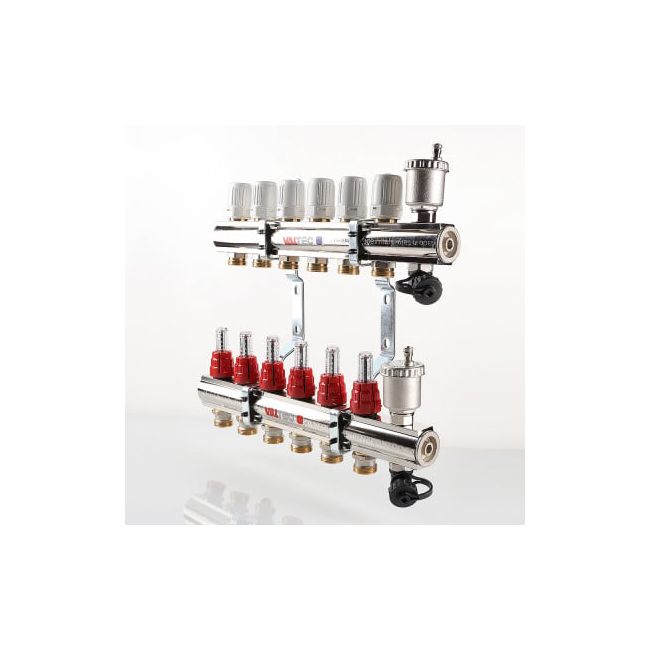 Коллекторный блок латунный с регулирующими клапанами и расходомерами 1"х9 вых. евроконус 3/4". VTc.596.EMNX Valtec характеристики