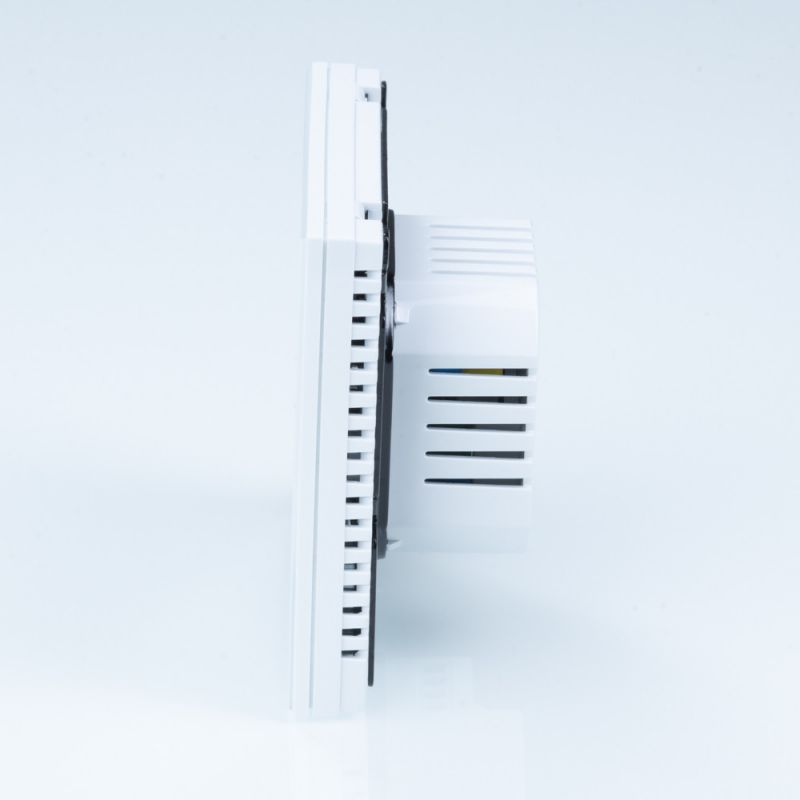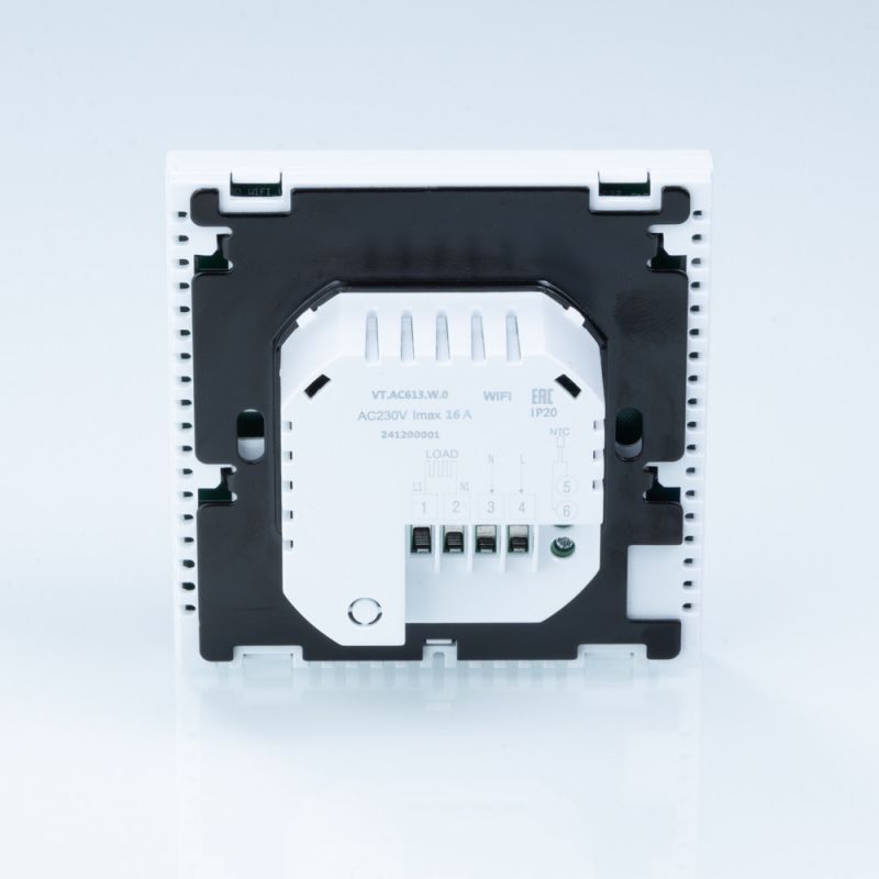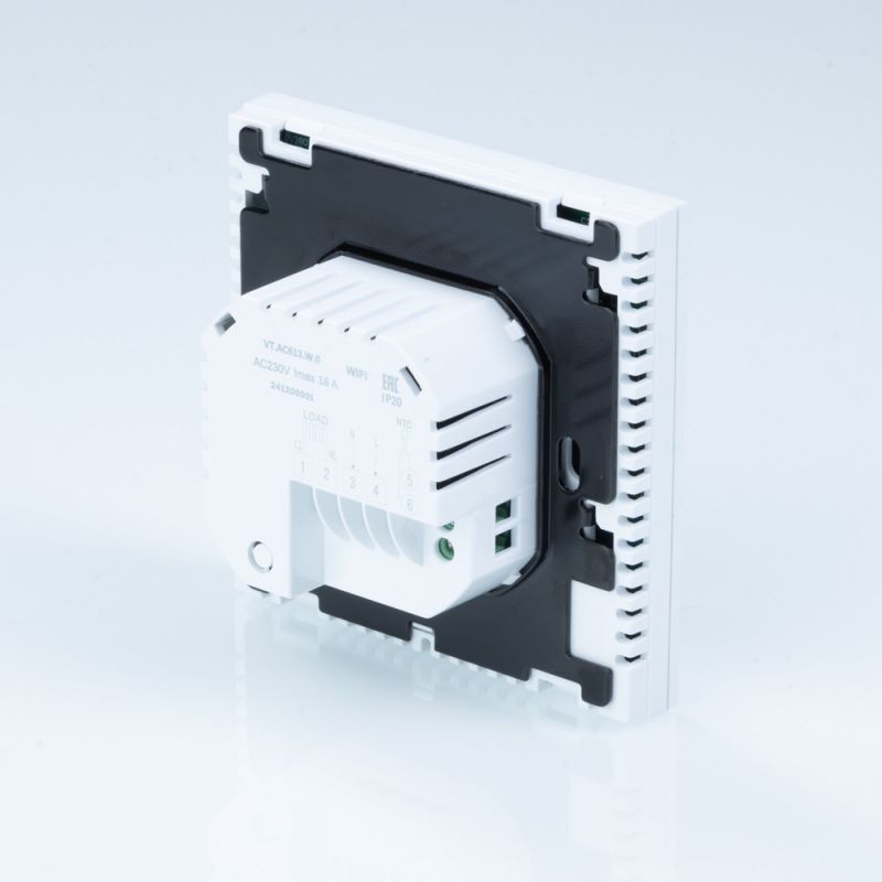 (VT.AC613.W) Комнатный WIFI-хронотермостат с цветным дисплеем предназначен для подачи управляющего сигнала (включить/выключить) на электрический теплый пол и исполнительные устройства водяного теплого пола или радиаторного отопления. Управление осуществляется в зависимости от температуры воздуха в помещении (встроенный датчик) и температуры пола (выносной датчик). Возможны недельное программирование и выбор режима работы – по датчику температуры воздуха или датчику температуры пола, а также совместный режим с двумя датчиками, при котором управление происходит по температуре воздуха, а выносной датчик служит как ограничитель от перегрева поверхности.