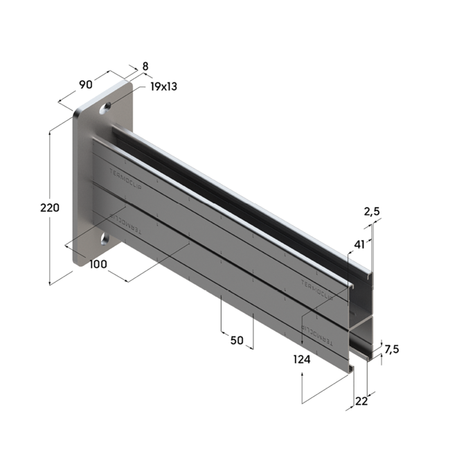 Консоль монтажная сдвоенная ТСА 41х124Dx2,5-1000 Hdg Termoclip характеристики