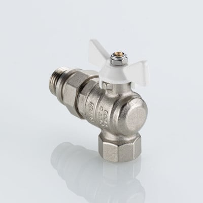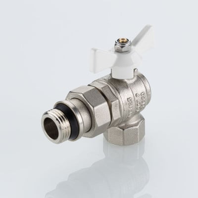 Кран шаровой BASE-ГОСТ угловой со сгоном и штуцером с белой рукояткой-бабочкой вн.-нар. DN20, PN40, 3/4"