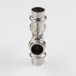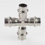 (VTi.941.I) Пресс-крестовина из нержавеющей стали VTi.941.I обеспечивает соединение четырех тонкостенных стальных труб систем водоснабжения, отопления, иных инженерных и технологических установок с рабочей температурой до 120 °С и давлением до 16 бар.