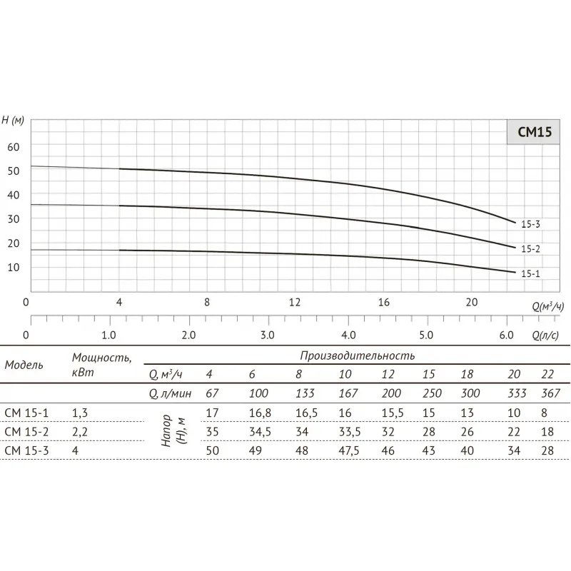 Многоступенчатый горизонтальный насос CM 15-3 характеристики