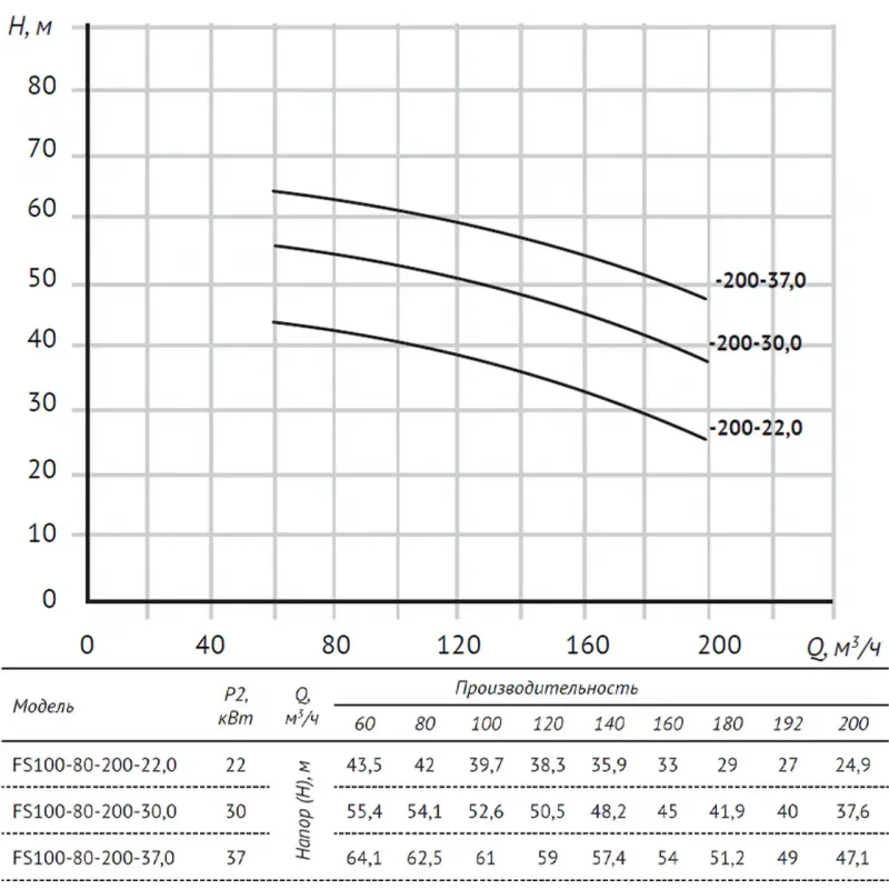 Насос FS100-80-200-22 центробежный горизонтальный одноступенчатый характеристики