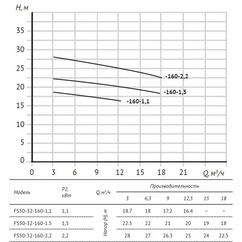 Насос FS50-32-160-2.2 центробежный горизонтальный одноступенчатый характеристики
