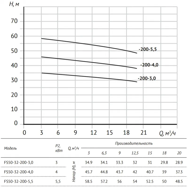 Насос FS50-32-200-5.5 центробежный горизонтальный одноступенчатый характеристики