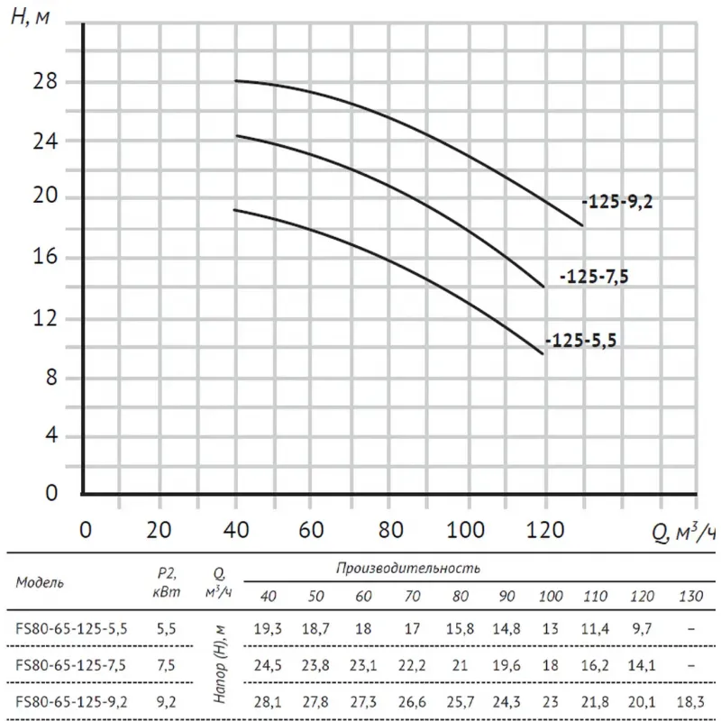 Насос FS80-65-125-5.5 центробежный горизонтальный одноступенчатый характеристики