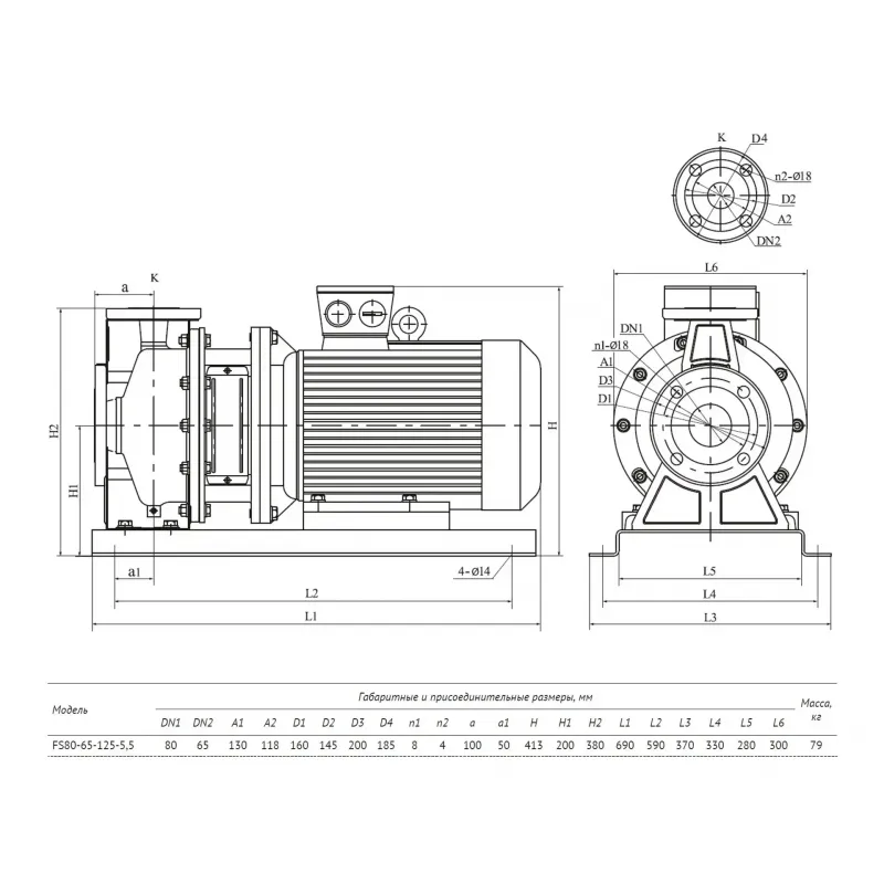 Насос FS80-65-125-5.5 центробежный горизонтальный одноступенчатый описание