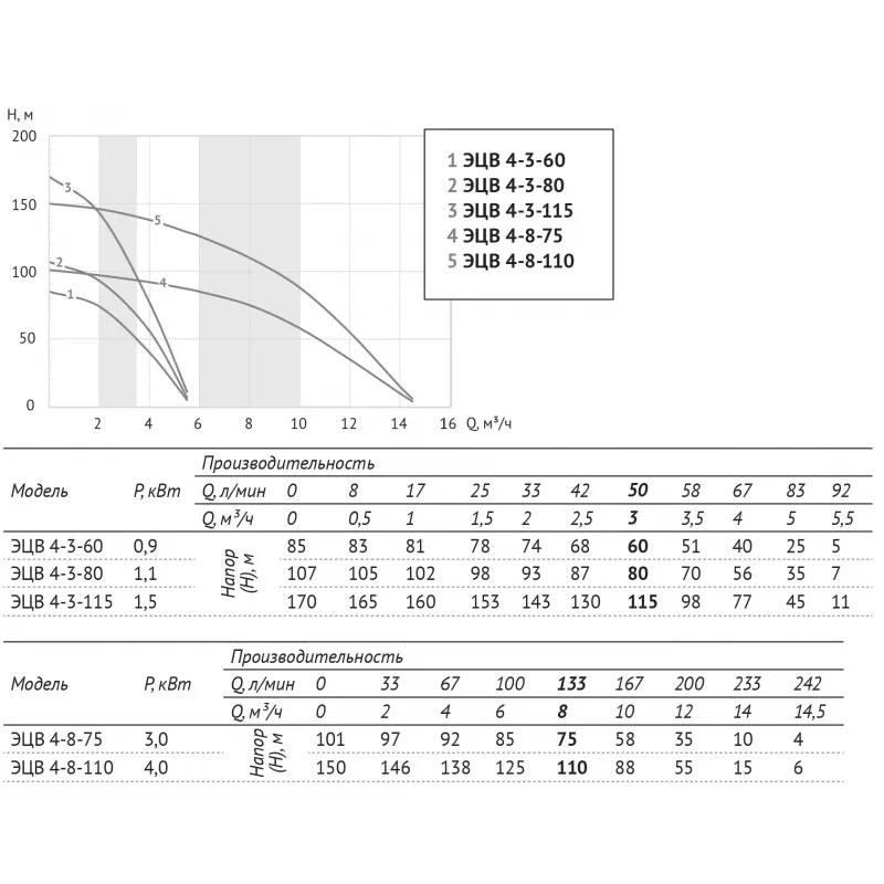 Насос погружной скважинный UNIPUMP ЭЦВ 4-3-60 характеристики