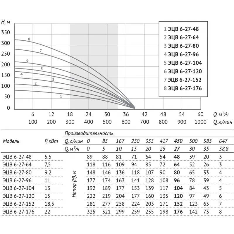 Насос погружной скважинный UNIPUMP ЭЦВ 6-27-120 характеристики