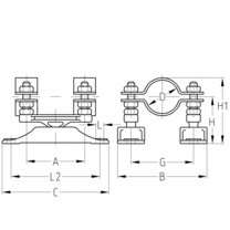 PHONOLYT® Неподвижная двойная опора для труб, оцинкованная