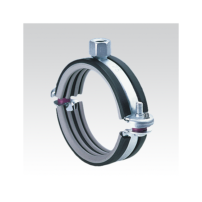 - Соединение виброизоляции и хомута с геометрическим замыканием предотвращает смещение скользящей виброизоляции