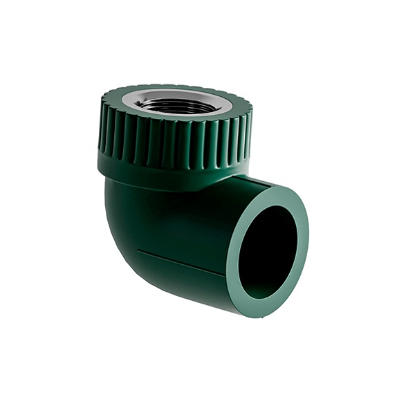 Отвод (уголок) SLT BLOCKFIRE PP-R комбинированный с внутренней резьбой (ВР), предназначен для соединения элементов полипропиленового противопожарного трубопровода под углом 90° с металлическими резьбовыми элементами инженерной системы и перенаправления потока.