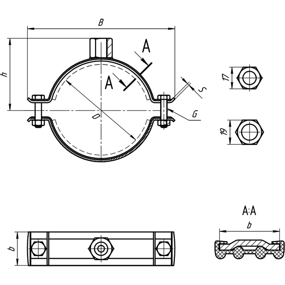 Хомут для высоких нагрузок PI-НD 5½" (149-164) М16 30х3FV Hdg Termoclip, Размер хомута в дюймах: 5 ½”, Для трубы диаметром, мм: 149-164, Материал хомута: Горячее цинкование, Метрическая резьба: М16