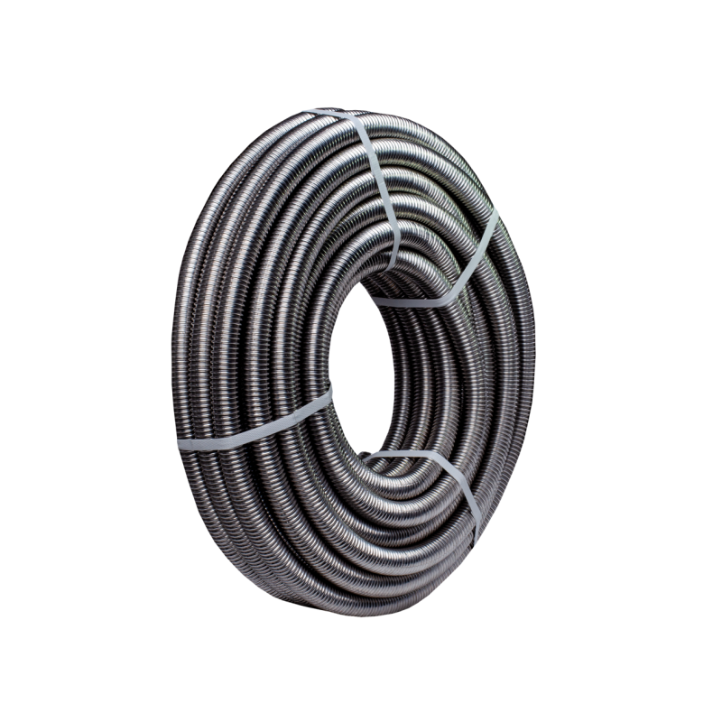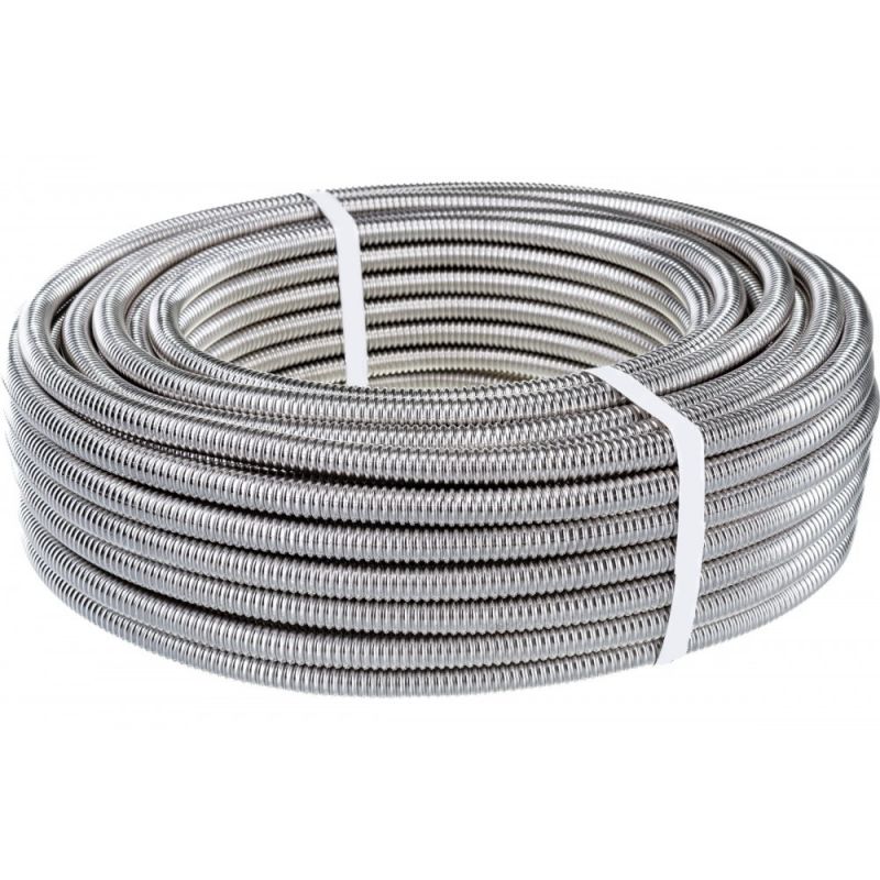 Гибкая гофрированная труба из нержавеющей 304 марки стали. Применяется для монтажа, систем отопления, горячего и холодного водоснабжения и пожаротушения, водяных теплых полов, обвязки котлов насосных групп и систем гибких подводок различного назначения. 100 метровые бухты идеально подходят для укладки теплых полов, что позволяет избегать дополнительных соединений в стяжке.