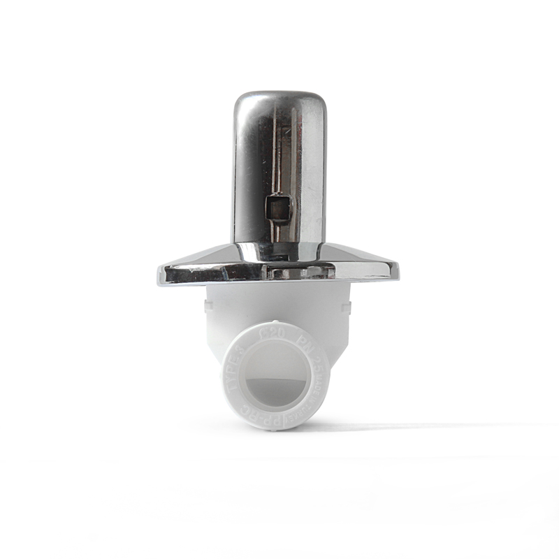Клапан (вентиль) полипропиленовый с хромированной рукояткой белый, 25, PRO AQUA, PA43010