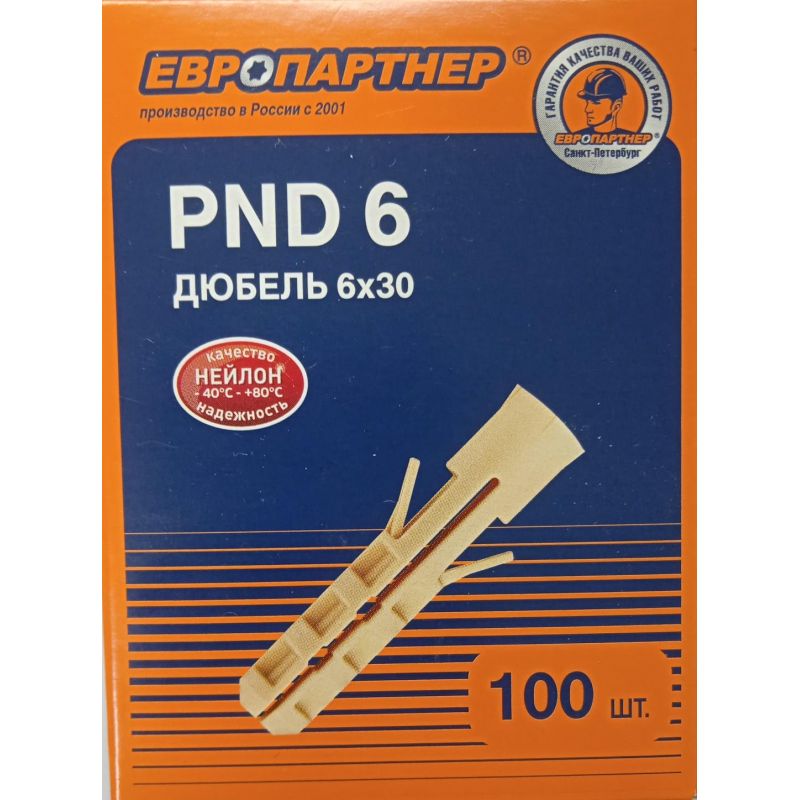Дюбель нейлоновый PND-6 x30 (100 шт.), кор. Европартнер