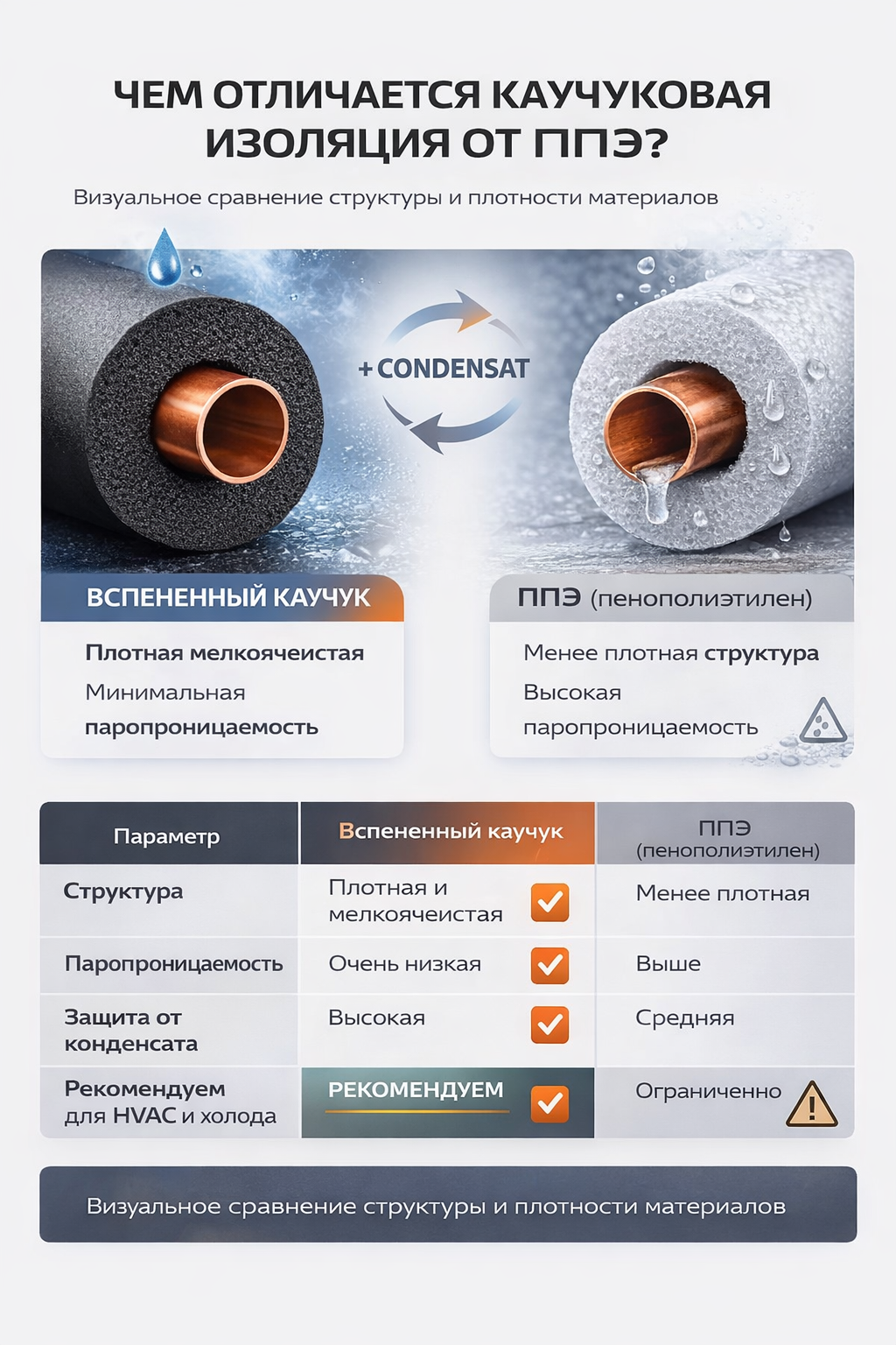 При подборе теплоизоляции для кондиционирования, холодильных установок и отопления чаще всего рассматриваются два материала: