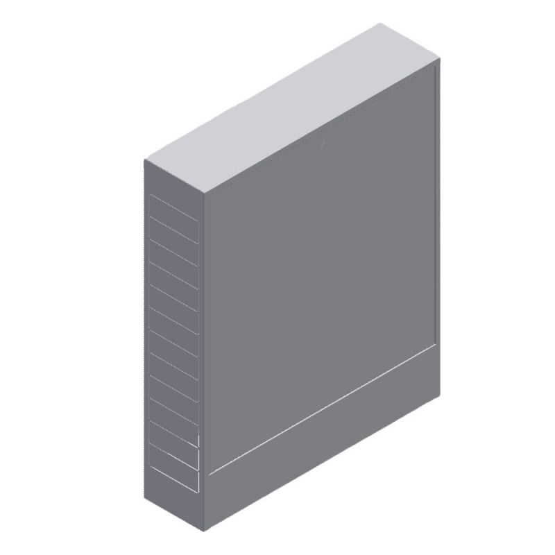 Пристраиваемые коллекторные шкафы (распределительные шкафы) увеличенной высоты VALTEC VTc.541.H (ШРН 180) предназначены для размещения в них этажных распределительных узлов систем общедомового отопления и водоснабжения. Установка шкафа – пристенная. Детали шкафов коллекторных VALTEC выполнены из оцинкованной стали. Лицевые поверхности окрашены порошковой эмалью цвета RAL 9016 с предварительной фосфатной подготовкой поверхности. В боковых стенках корпуса выполнена перфорация, сегменты которой удаляются в месте, удобном для пропуска присоединяемых трубопроводов. Откидная дверца имеет замок, защищающий установленное в шкафу оборудование от несанкционированного доступа. Внутри шкафа установлены передвижные монтажные рейки, к которым крепится оборудование.
