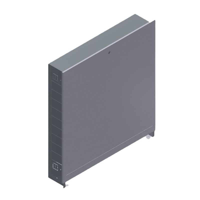 Коллекторный встраиваемый шкаф повышенной высоты VALTEC серии VTc.540.H предназначен для установки в стенах многоквартирных домов и используется для размещения этажей распределения воды и тепла. Конструкция монтируется непосредственно в заранее подготовленную нишу стены. Каркас шкафа выполнен из высококачественного оцинкованного материала, обеспечивающего защиту от коррозии. Поверхность лицевой части покрыта прочной порошковой краской оттенка RAL 9016, предварительно прошедшей специальную обработку фосфатом для увеличения срока службы изделия. Стенки шкафа оснащены специальными прорезями, позволяющими быстро устанавливать трубопроводные коммуникации в наиболее удобных точках. Система оснащена защитным механизмом замка на дверце, исключающим доступ посторонних лиц к размещенному внутри оборудованию. Благодаря встроенным направляющим рейкам возможна удобная установка необходимого устройства в любое удобное положение внутри шкафа.