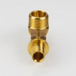 VTm.433.G – трехсторонний латунный аксиальный фитинг с переходом на наружную резьбу в центральном отводе (тройник надвижной с переходом на наружную резьбу), обеспечивающий присоединение к полимерному трубопроводу элемента системы с резьбовым патрубком.