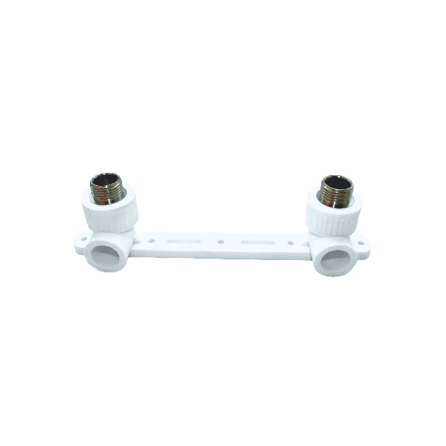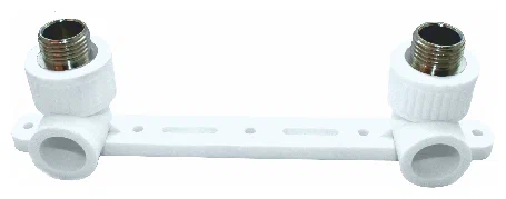 Изделие выполнено из прочного полипропилена (PPR) и оснащено двумя металлическими вставками с наружной резьбой (НР). Наличие крепежной планки обеспечивает точную фиксацию на поверхности и упрощает установку смесителей, кранов и другой сантехники.