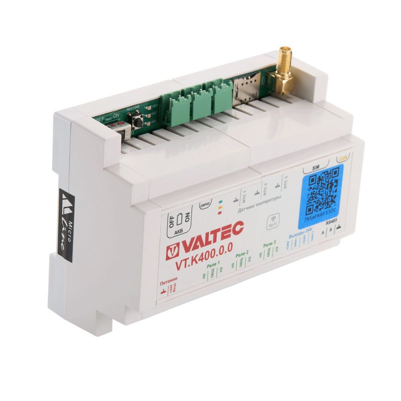(VT.K400.0) Универсальный контроллер предназначен для плавного управления насосно-смесительными узлами различного типа. Управление приводом производится в плавном режиме с использование принципа ПИД-регулирования. Управление насосом производится в дискретном режиме (включить/выключить) по заданным параметрам работы отопительного контура.