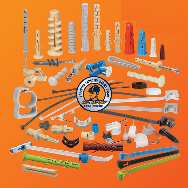 Дюбели и дюбель-гвозди: изготовленные из прочнейшего нейлона, который обеспечивает устойчивость к нагрузкам до 400 кг и работает в диапазоне температур от -40°C до +80°C.