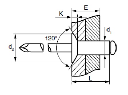 Заклепка вытяжная Ал/Ст 4,0х16 потайной бортик 120° Bralo описание