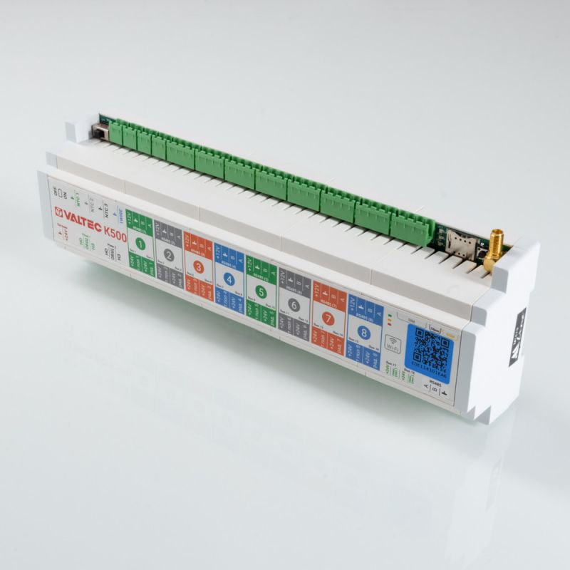 (VT.K500.0) Зональный контроллер предназначен для комплексной автоматизации системы отопления в индивидуальном доме. Устройство позволяет осуществлять дистанционное управление отоплением в помещениях посредством комнатных термостатов VT.AC801.0, управлять насосно-смесительными узлами на основе термостатических или поворотного клапана.